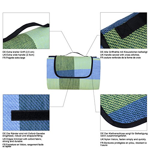 Umfangreich einsetzbar – Die Picknickdecke ist nicht aber für ein Picknick, sondern auch für den Strand, Grillpartys oder Camping nach Maß. Außerdem können Sie sie auch zum Sonnenbaden oder zuhause als Unterlage benutzen. Zudem schützt sie Autositze beispielsweise vor nassen, dreckigen Haustieren und vielem mehr