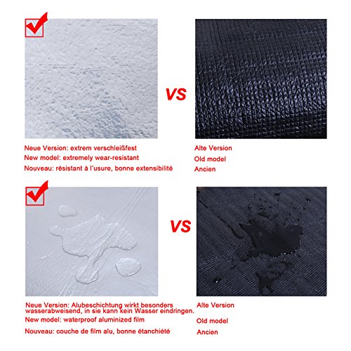 Robuste und haltbare Materialien – Insgesamt drei Schichten: Kuschelige Oberfläche aus Polyacrylnitril (PAN) Faserstoff, die Polsterung und die wärmeisolierende Unterseite aus Aluminiumbeschichtung, die strapazierfähig und reißfest ist. Die Oberfläche fühlt sich sehr angenehm auf der Haut an