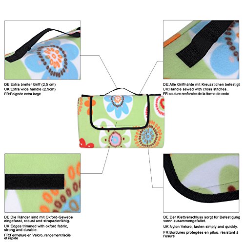 Umfangreich einsetzbar – Die Picknickdecke ist nicht nur für ein Picknick, sondern auch für den Strand, Grillpartys oder Camping geeignet. Außerdem können Sie sie auch zum Sonnenbaden oder zuhause als Unterlage benutzen. Zudem schützt sie Autositze beispielsweise vor nassen, dreckigen Haustieren und vielem mehr
