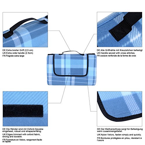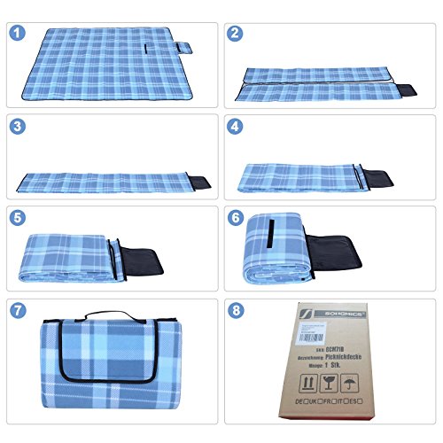 Umfangreich einsetzbar – Die Picknickdecke ist nicht nur für ein Picknick, sondern auch für den Strand, Grillpartys oder Camping geeignet. Außerdem können Sie sie auch zum Sonnenbaden oder zuhause als Unterlage benutzen. Zudem schützt sie Autositze beispielsweise vor nassen, dreckigen Haustieren und vielem mehr