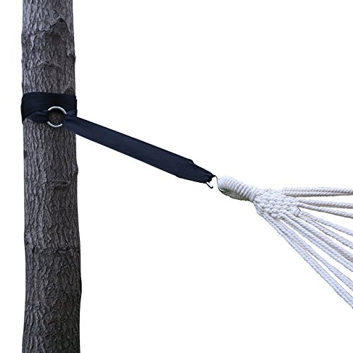Leicht zu handhaben – Mit dem Band lässt sich der Baum einfach umschlingen, und durch die massiven Haken fixieren. Die Hängematte hält damit dann perfekt an Bäumen oder Holz- und Metallpfählen
