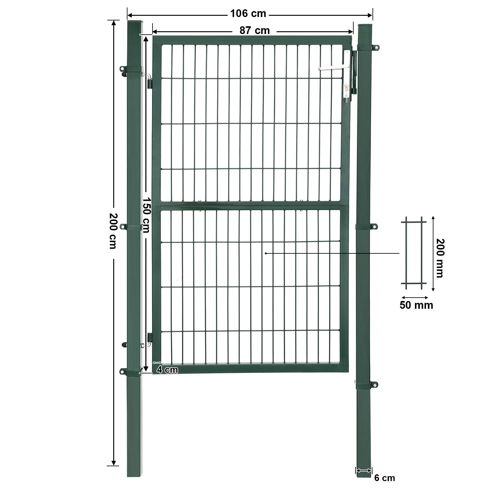 Komplettes mitgeliefertes Ergänzung – Das gesamte Befestigungszubehör wird mitgeliefert (vom Türflügel zu den Pfosten, von den Pfosten zu den Zäunen). Anhand der Blisterverpackung sind die Einzelteile gut verträglich zu ersehen