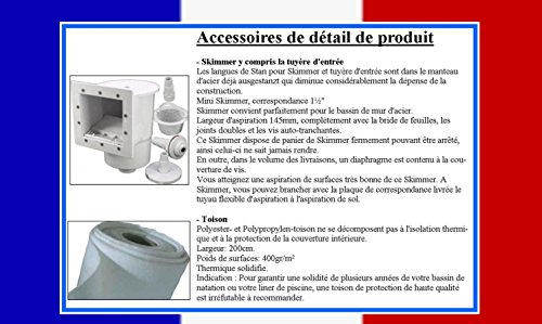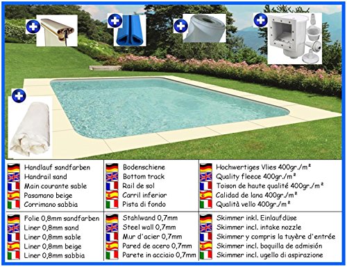 Lieferumfang: Spezial-Handlauf sandfarben, Bodenschiene, Stahlwand 0,7mm, Folie 0,8mm sandfarben, Skimmer inkl. Einlaufdüse, hochwertiges Vlies 400g/m²