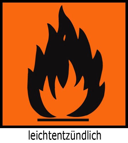 R11: leicht entzündlich – S 2: Darf nicht in die Hände von Kindern gelangen