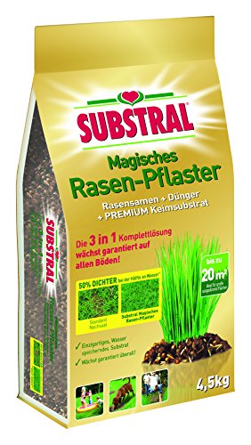 Magisches Rasen-Pflaster 4,5 KG anstelle 20 m² Die 3 in 1 Komplettlösung! Wächst garantiert auf allen Böden. Substral Magisches Rasen-Pflaster wurde entwickelt, um tief gelegen vielfältigen Bedingungen wachsen zu können. – In voller Sonne oder auf strapazierten Flächen – Das Beendung ist allzeit ein dichter und vitaler Rasen, der Ihnen lange in den Besitz kommen bleibt. Die einzigartige Kombination ganz Premium Keimsubstrat, Grassamen und Substral Dünger bietet die optimalen Voraussetzungen, um einen schönen Rasen über und über anzusäen – aka auf schwierigen Böden!