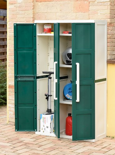 3-türiger Schrank Mittels 4 uff verschiedene Höhen einstellbaren Fächern unter anderem Werkzeugaufbewahrungstür