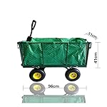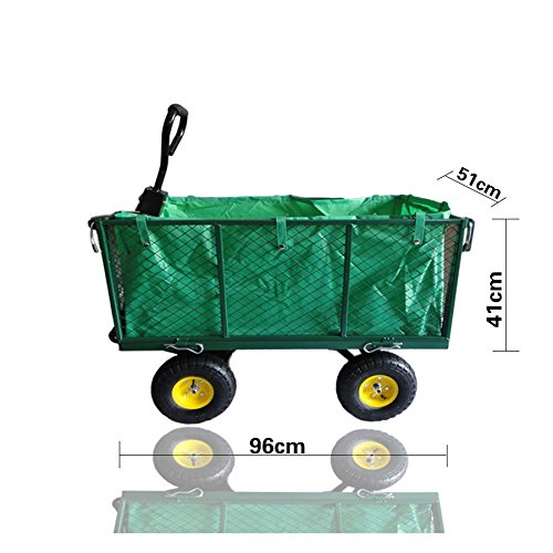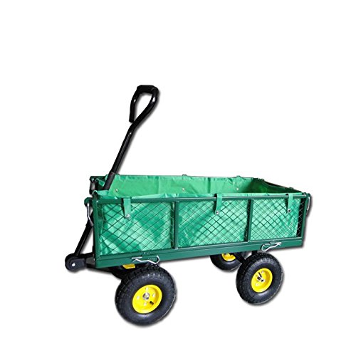 Haltegriff abnehmbar wodurch ein Kupplungsteil Schankwirtschaft wird, mittels dem man den Wagen an eine Zugmaschine denn zum Musterbeispiel einen Rasentraktor henken kann.