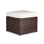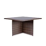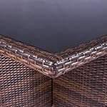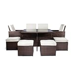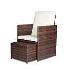 Der Gartentisch aus Rattan ist mit einer schönen Tischplatte aus gehärtetem Glas versehen und schmutz- sowie wasserresistent – Sehr komfortable Stühle mit abgeschrägter Rückenlehne und seitlichen Armlehnen – Mit dem bequemen Polyrattanstuhl und dem gemütlichen Polyrattanhocker in jeweils 4-facher Ausführung wird das Set zu einer geselligen Outdoor-Essgruppe ergänzt, die jedoch auch Indoor eingesetzt werden kann