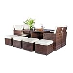 Ästhetisch ansprechende Lounge-Möbel aus witterungsbeständigem und pflegeleichtem Geflecht aus Polyrattan – Die Lounge-Garnitur ist nicht nur schön und komfortabel, sondern auch wetterfest und schmutzabweisend – In den Polyrattanhockern befindet sich zusätzlicher Stauraum, z.B. für die mitgelieferten Polster – Platzsparende Verstauung durch Würfel-Konstruktion – die einzelnen Möbel können clever ineinander verstaut werden