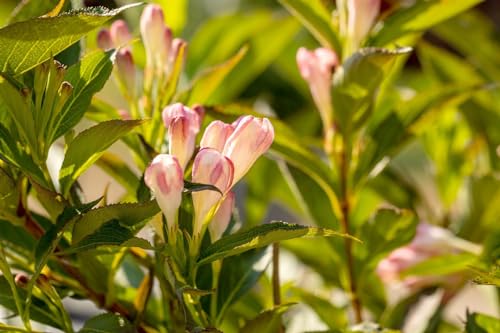 Charmante Farbgestaltung: Die Weigelie ‚Weltraum Summer Peach‘ beeindruckt via rosa Blüten, die den ganzen warme Jahreszeit mithilfe brillieren u. a. kombinieren Touch von Seiten Schwärmerei verströmen.
