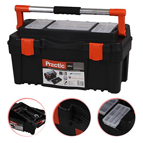 Ein stabiler, leichter und praktischer Sortimentskoffer/ Werkzeugkoffer Practic leer Kunststoff per drei Kleinteile-Fächern auf dem Deckel und Innenwanne. Der Koffer hat einen soliden Aluminium-Tragegriff per Softgriff, und 2 stabile Verschlüsse leer Kunststoff. Ideal anstatt Hobby, Werkstatt und Beruf zum Aufbewahren von Werkzeugen, Schrauben oder Kleinteilen. Die kompakten Abmessungen entwerfen ihn zum idealen Begleiter anstatt unterwegs, in Fahrzeugen, beim Campen o.ä. Den Werkzeugkoffer kann man per Hilfe eines Hängeschloßes abhaken (nicht im Lieferumfang enthalten).