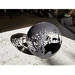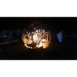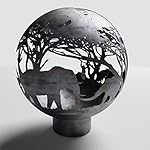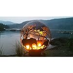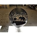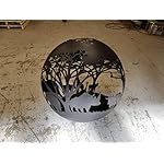 Spherical firepit available non…“ or 37″ sizings and featuring an African wildlife scene with elephants, a giraffe, and monkeys swinging from the trees.