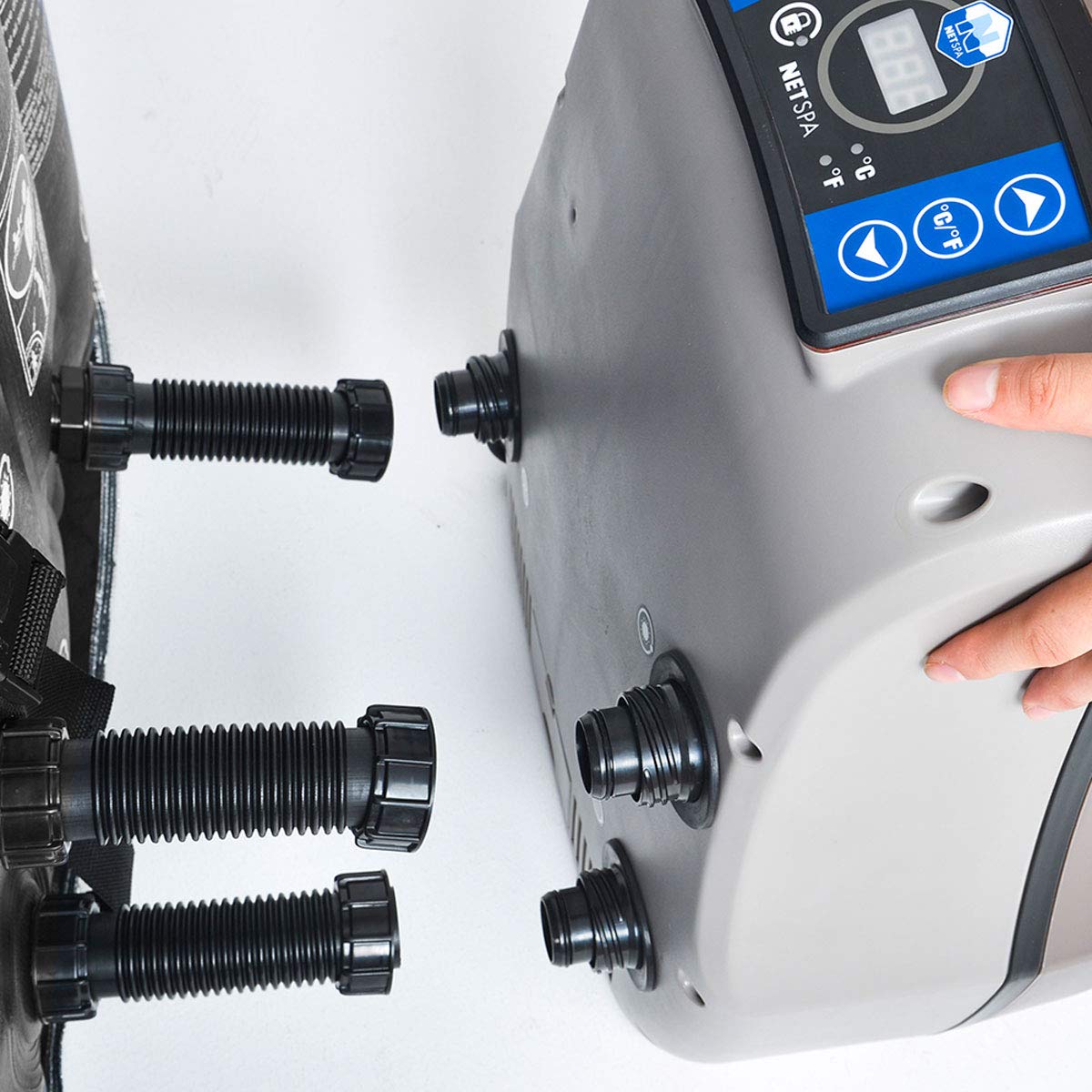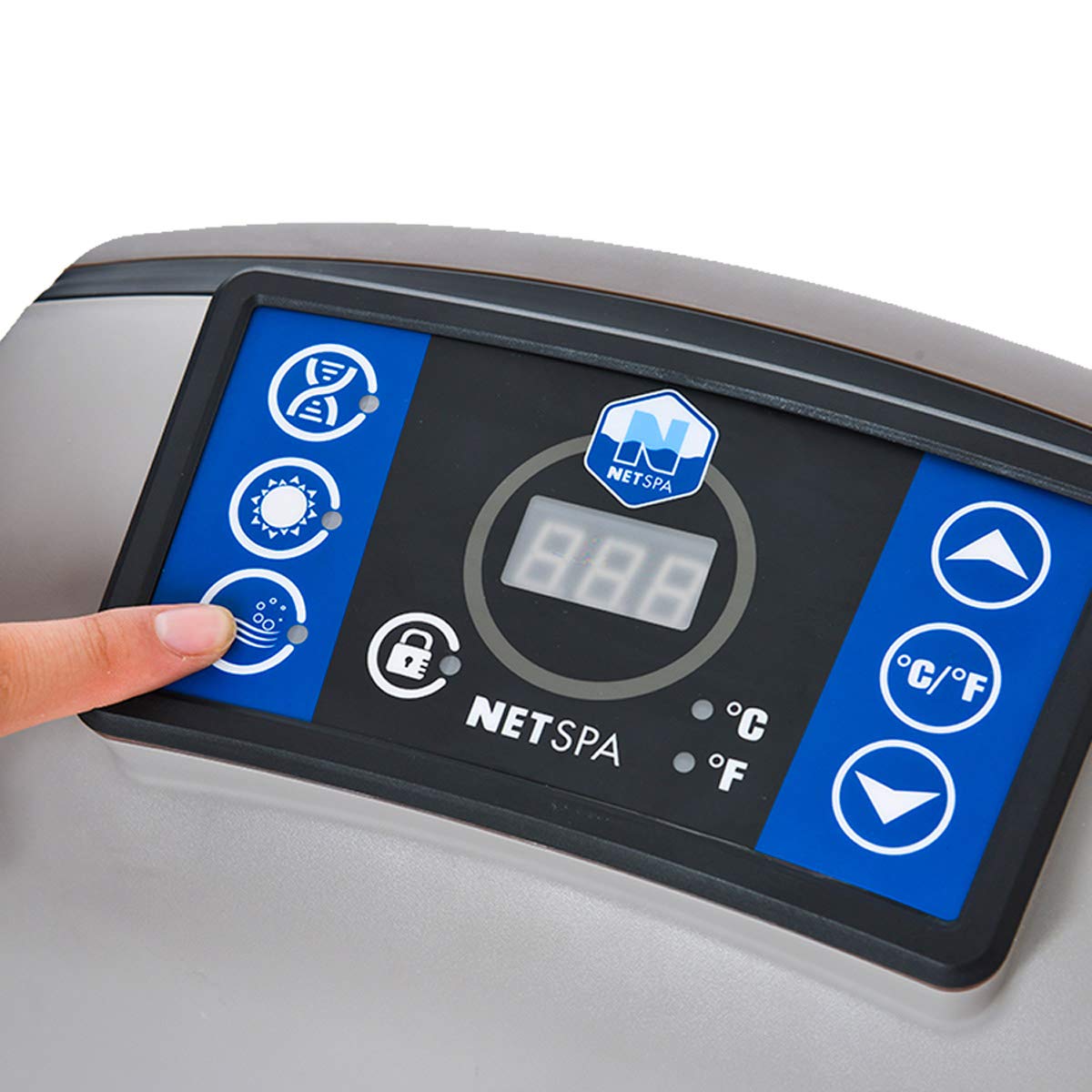 110 Luftsprudel-Massagedüsen, PTC-Heiztechnologie, Geradezu-Aufblasfunktion mithilfe Knopfdruck, ein ausgeklügeltes Filtersystem Per Filterwechsel-Notruf, eine Leichtmetall-Isolier-Hülle Per Bodenmatte sowohl …. als auch eine kinderleichte Zentralsteuerung Per Flüssigkristallbildschirm-Monitor runden sein Längsschnitt ab