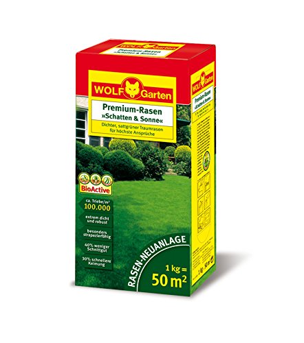 WOLF-GARTEN – Rasen / Rasen-Saatgut – Premium-Rasen »Schatten & Sonne« 50 qm LP 50 – EAN: 4009269382038