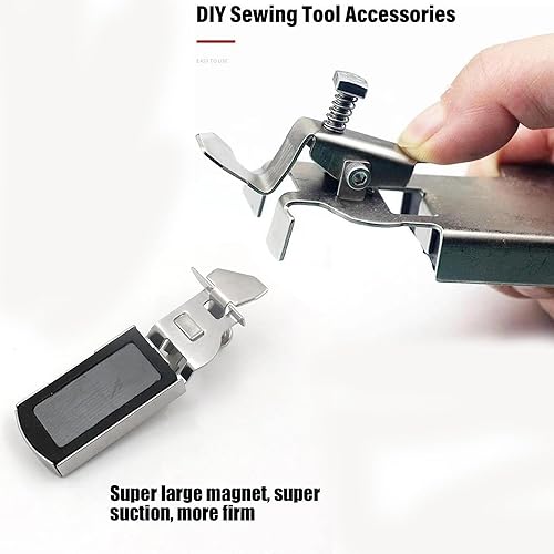 【Easy Repositioning】BuddySew’s Magnetic Seam Guide really helps! Effortlessly remove and reposition the magnetic guide as needed. Denkweise the little magnet on the needle plate of your sewing machine and let the fabric glide against the guide to finish any project accurately.
