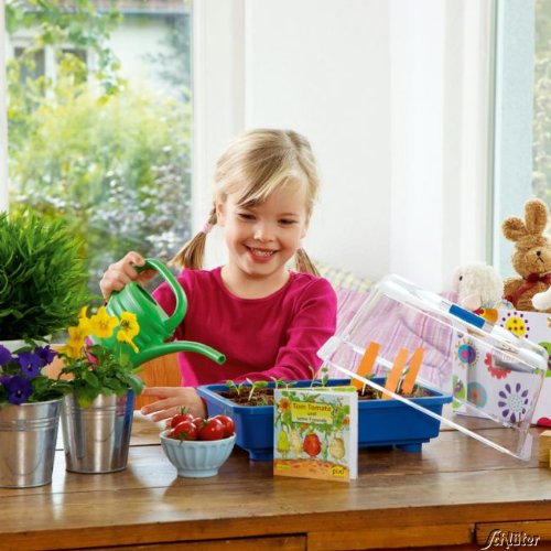 Das Zimmergewächshaus-Set „“Mia““ ist ideal passend anstelle Kinder. Spielend erlernen Sie den Umgang mit Saat und lebendigen Pflanzen und erschaffen ein natürliches Verantwortungsbewußtsein. Zusätzlich zu einfach zu ziehendem Saatgut ist das kindgerechte Pixi-Buch „“Tom Tomate und seine Freunde““ enthalten.