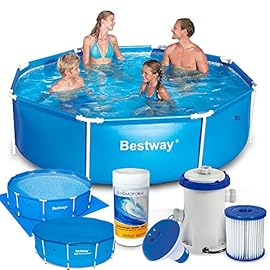 7in1 Set Steel Pro Frame Pool 244 x 61 cm Bestway 56431 mit Filterpumpe 1249 Liter / Stunde und Zubehör