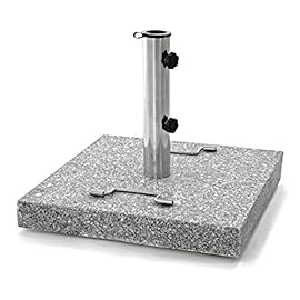 Nexos Sonnenschirmständer 30kg polierter Granit Edelstahl eckig 45 x 45 cm Schirmständer mit Griff und Rollen