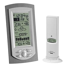 TFA Dostmann Laluna Funk Wetterstation, mit Außensensor, Wettervorhersage, Anzeige des Raumklimas, Mondphasen, Funkuhr, grau