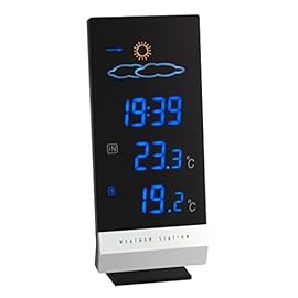 TFA Dostmann Lumax Funk Wetterstation, mit Farbdisplay, Außen- und Innentemperatur, Wettervorhersage, Funkuhr, innen und aussen, schwarz, L 80 x B 25 (58) x H 180 (192) mm