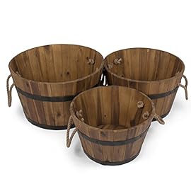 Vanage Holzbottiche aus Akazien-Holz FSC 100% | Blumentopf | Blumenkübel im 3er Set | rustikaler Pflanzkübel, Holzkübel für den Garten in braun