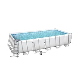 Bestway Power Steel Rectangular Frame Pool Set, viereckig Stahlrahmenpool-Set mit Sandfilteranlage + Zubehör, grau