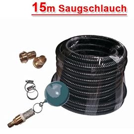 SAUGSCHLAUCH SET für HAUSWASSERWERK KREISELPUMPE JETPUMPE SCHWIMMENDE ENTNAHME Ansaug-Set 3 mit 15m Saug-/Druckschlauch Rückschlagventil aus Messing, Ansaugkorb aus rostfreiem Edelstahl. Nie wieder Ansaugprobleme oder Pumpenausfall durch Sedimente!