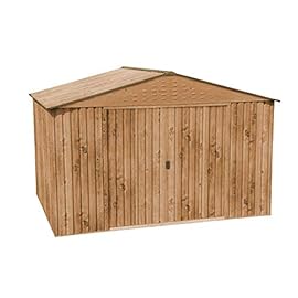 Metallgerätehaus Colossus 10×8 mit Schiebetüren aus pulverbeschichtetem, feuerverzinktem Stahlblech – nicht rostend | Wandstärke 0,33 mm | Farbe: Eiche