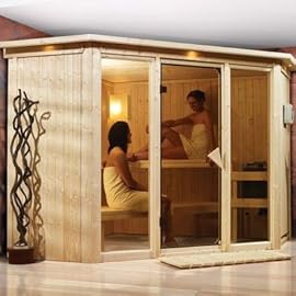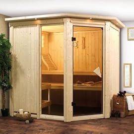 Helin – Karibu Sauna inkl. 9-kW-Bioofen – mit Dachkranz –