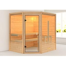 Karibu Sauna Elia mit Dachkranz (Eckeinstieg) – für niedrige Räume