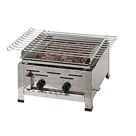 Profi Lavastein Gasgrill /Gasbräter 2-flammig, mit Spiessaufsatz, 11 Spiessen, Schlauch und Druckregler